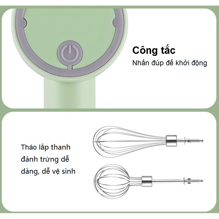 Giới thiệu [Mã ELHA22 giảm 5% đơn 300K] Máy đánh trứng cầm tay tích điện không dây 3 chế độ