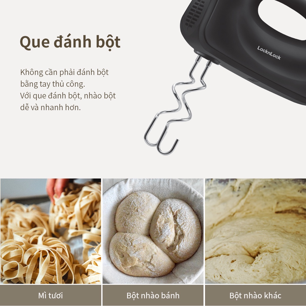 Thiết Bị Điện Gia Dụng > Đồ gia dụng nhà bếp > Máy trộn thực phẩm || [Mã ELHA22 giảm 5% đơn 300K] Máy đánh trứng Lock&Lock Hand Mixer - màu xám đậm EJM501DGRYCòn hàng