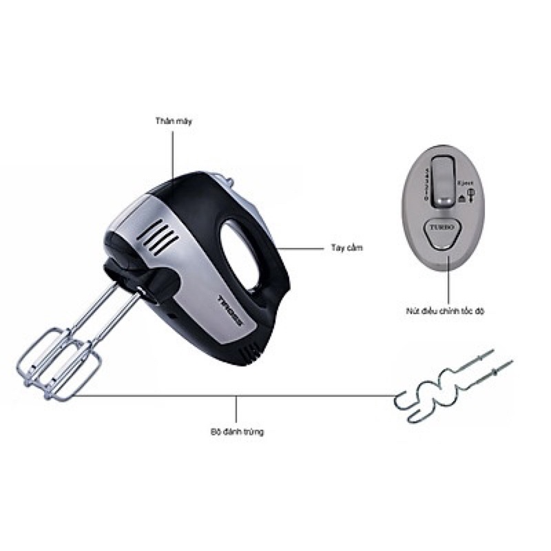 5 chế độ hoạt động với công suất 300w Các que trộn làm bằng thép không gỉ Vỏ bọc bên ngoài của máy làm bằng thép cao cấp Chức năng: đánh trứng, nhào bột, trộn thức ăn....Chất liệu thép cao cấp