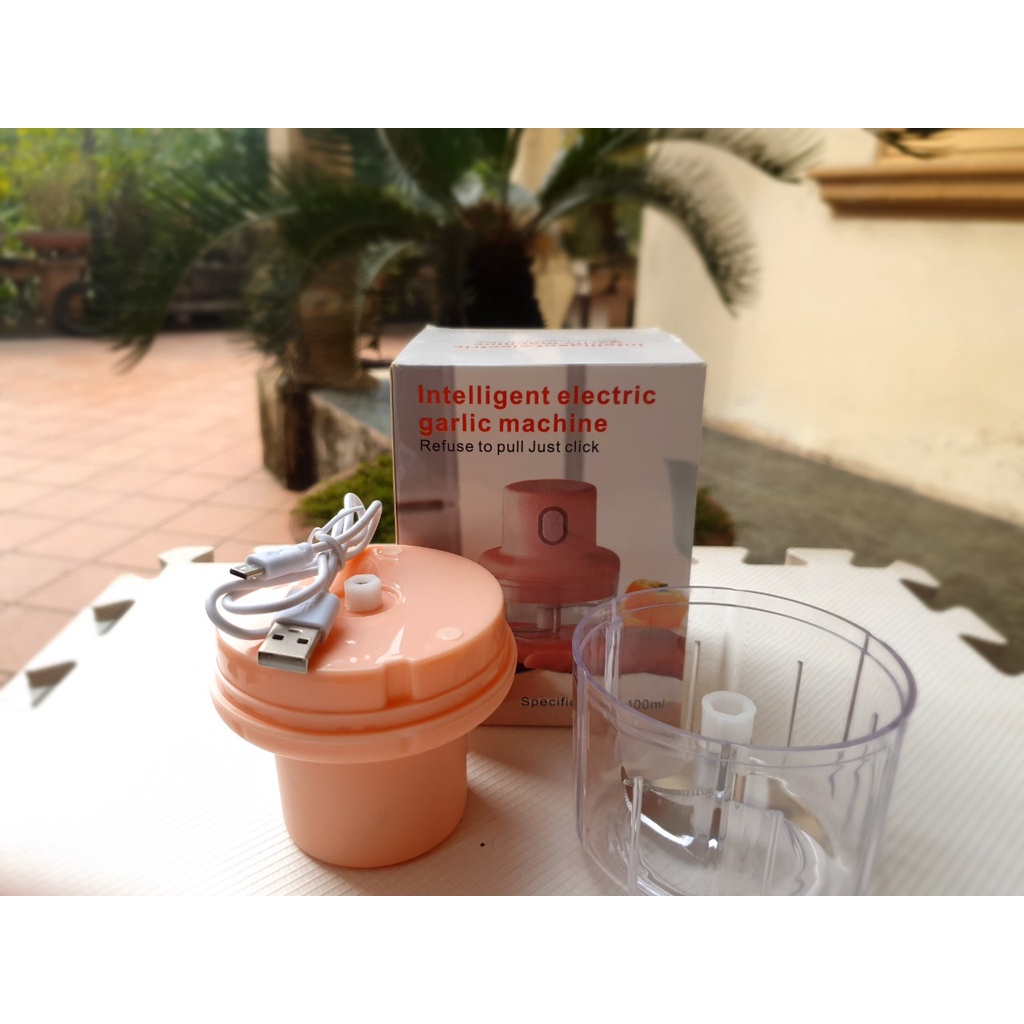 Máy xay tỏi ớt cầm tay dung tích 250ml sạc USB 3 lưỡi dao nhỏ gọn dễ vệ sinh