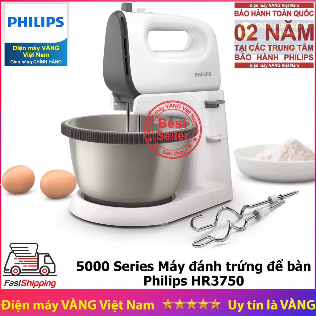 Thiết Bị Điện Gia Dụng > Đồ gia dụng nhà bếp > Máy trộn thực phẩm || [Mã ELHA22 giảm 5% đơn 300K] Máy đánh trứng để bàn Philips HR3750 thay thế cho model HR1559 HR3745 HR3705Còn hàng