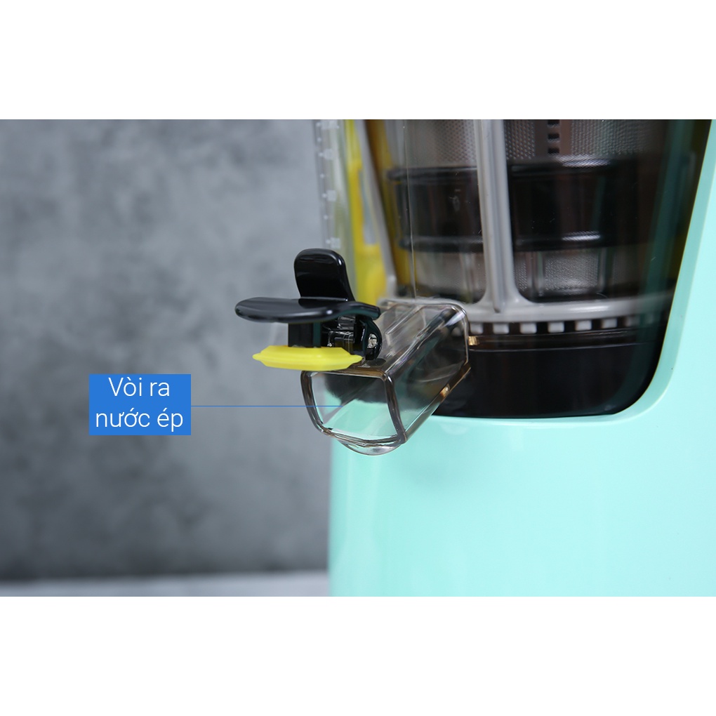 ● Máy ép chậm có thể ép kiệt bã tới 98%, 1 tốc độ ép với 50 vòng xoay/phút, công suất 400W ép liên tục 30 phút không bị nóng, cho ra khoảng 15 - 20 lít nước ép tùy từng nguyên liệu