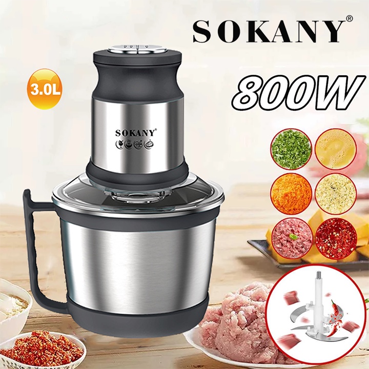 Giới thiệu [Mã ELHA22 giảm 5% đơn 300K] Máy Xay Thịt, Tỏi Ớt Đa Năng SOKANY 3L INOX Công Suất Lớn 800W [BH 12 Tháng]