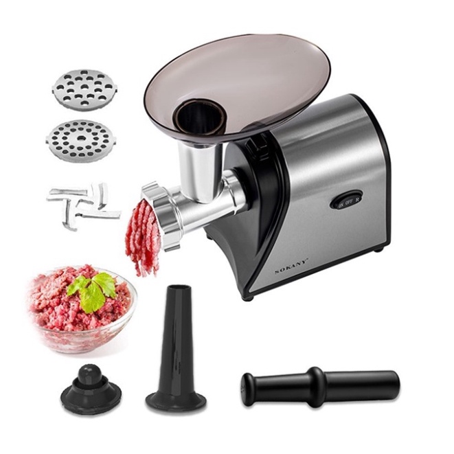 - Thân máy bằng nhựa ABS siêu bền Máy xay thịt SOKANY động cơ 1500W với 2 tốc độ, phù hợp xay hầu hết các loại thịt và thực phẩm trong tích tắc.