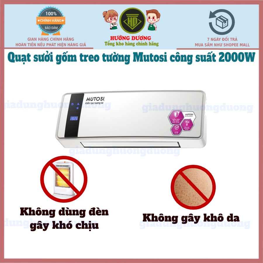 Thiết Bị Điện Gia Dụng > Thiết bị điện gia dụng lớn > Máy sưởi || [Mã ELHA22 giảm 5% đơn 300K] Máy sưởi gốm, quạt sưởi gốm Ceramic Mutosi MCH-2000, không gây trói mắt, không gây khô daCòn hàng