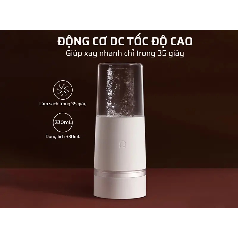 Máy xay sinh tố mini Xiaomi có tốc độ xay 18000 vòng/phút, xay nhanh trong vòng 35 giây với tỉ lệ cặn dưới 6% giúp người dùng có ngay ly sinh tố thơm ngon, bổ dưỡng trong chưa đầy 1 phút.