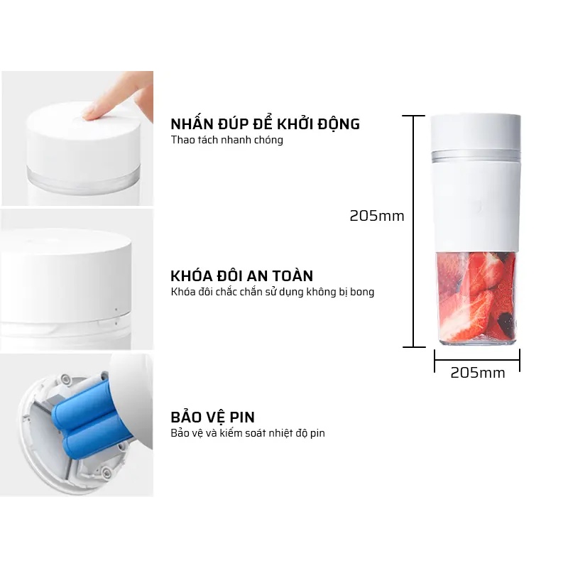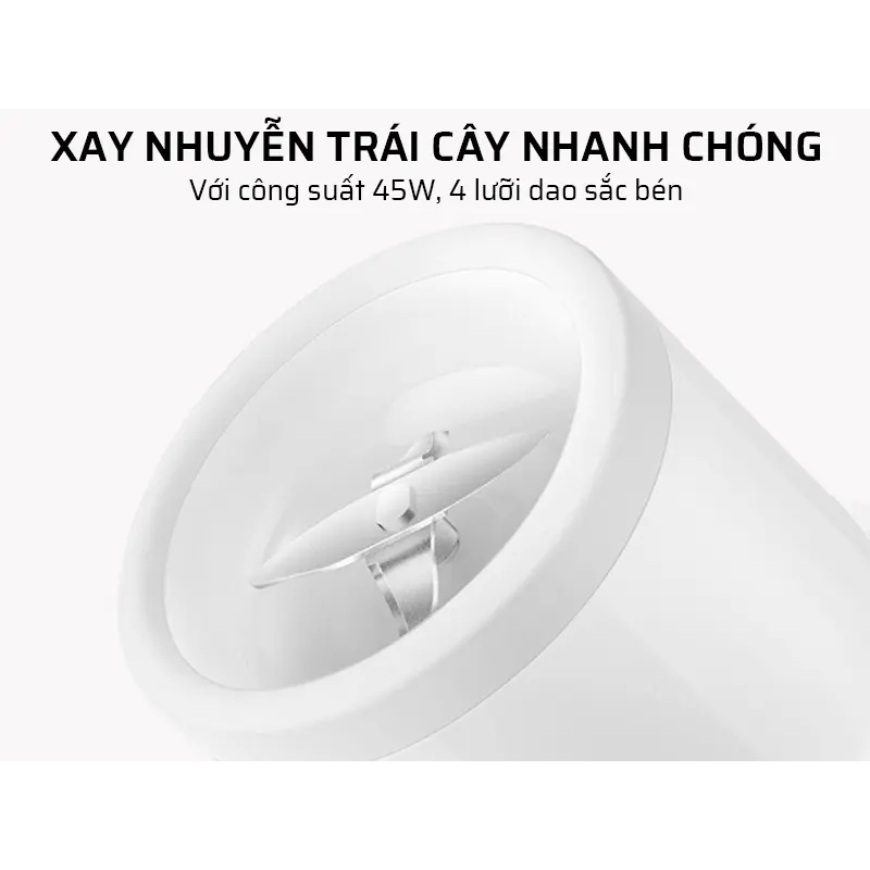 Máy xay mini cầm tay Xiaomi có công suất 45W, giúp xay nhuyễn trái cây, tiết kiệm điện. Phần thân máy xay sinh tố được làm từ vật liệu Tritan cùng độ dày lên tới 5mm, bền bỉ, an toàn khi tiếp xúc thực phẩm. Ngoài ra, thiết kế cốc xay trong suốt, giúp người dùng dễ dàng quan sát thực phẩm khi đang xay.