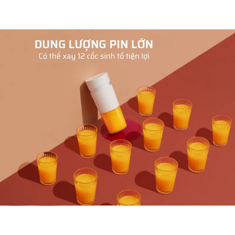 Dung lượng pin lớn 1300mAh, cho khả năng xay 12 cốc sinh tố