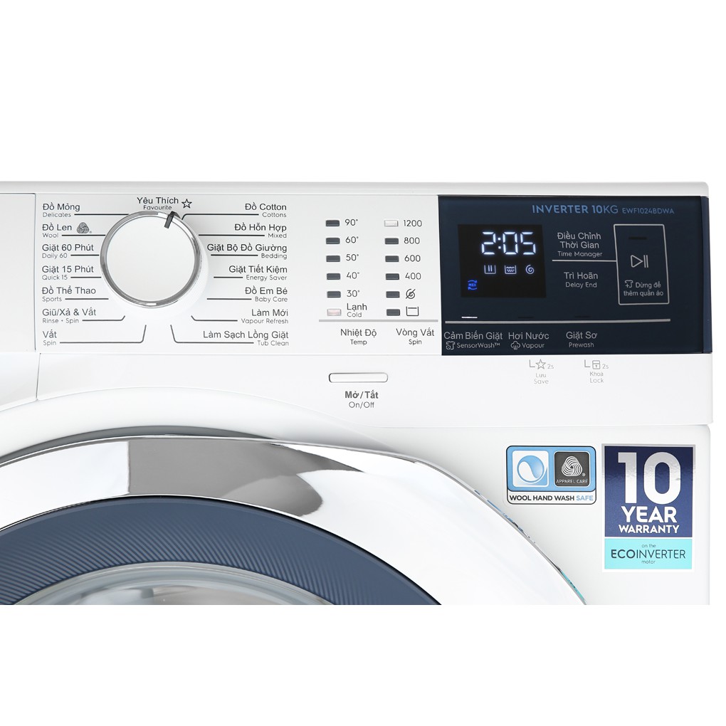 Thiết Bị Điện Gia Dụng > Thiết bị điện gia dụng lớn > Máy giặt & Máy sấy > Máy giặt || [Mã ELHA22 giảm 5% đơn 300K] Máy giặt Electrolux Inverter 10 kg EWF1024BDWACòn hàng