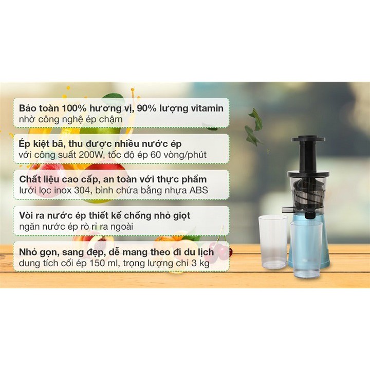 - Máy ép chậm mini KALITE KL 530 từ công nghệ sản xuất đến chất liệu đều đạt những tiêu chuẩn nghiêm ngặt của Châu Âu.