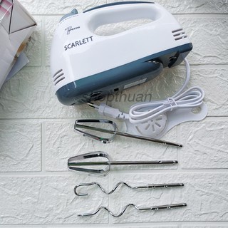 Máy Scarlett HE133 thiết kế vỏ bằng nhựa cao cấp , que đánh trứng nhào bột làm bằng thép không gỉ an toàn thực phẩm dễ dàng vệ sinh