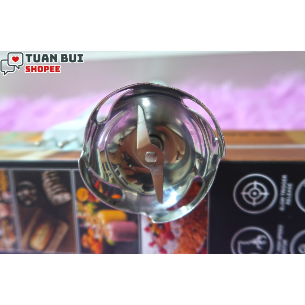 Đặc biệt, để vệ sinh máy xay cầm tay, bạn chỉ cần nhúng máy vào một cốc nước rồi nhấn nút xay vài lần là đã đánh bay được các vết bẩn cứng đầu, cuối cùng bạn chỉ cần lấy khăn khô lau sạch là xong. Vệ sinh máy xay cầm tay khá đơn giản và nhẹ nhàng do không cần phải vệ sinh cặn bẩn trên cối xay như các máy khác.