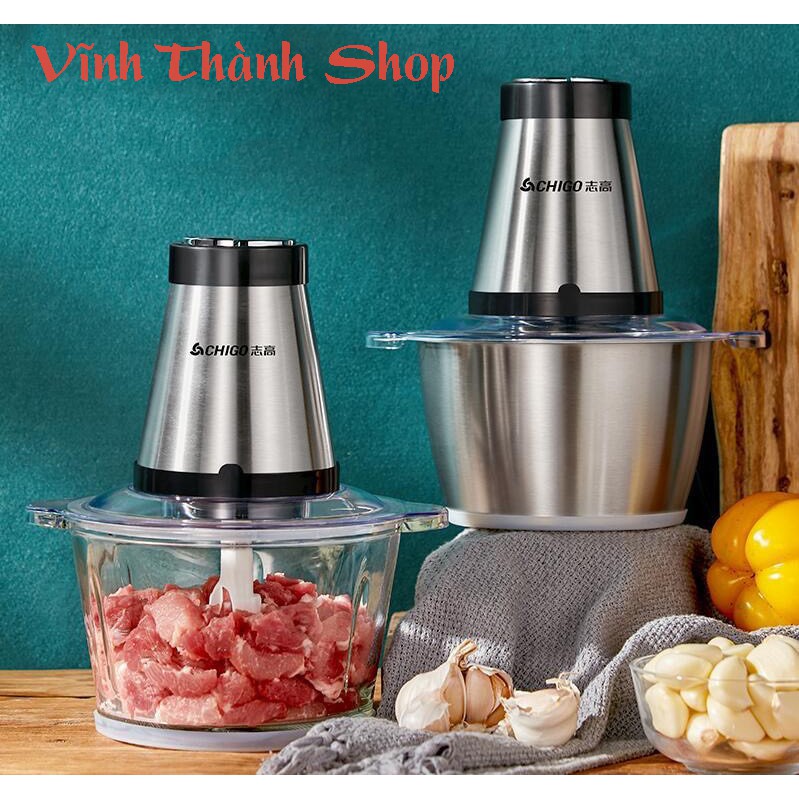 [Mã ELHA22 giảm 5% đơn 300K] Máy Xay Thịt, Tỏi, Ớt Đa Năng CHIGO 4 Lưỡi Inox 304 Dung Tích 2 Lít Bảo Hành 1 Đổi 1