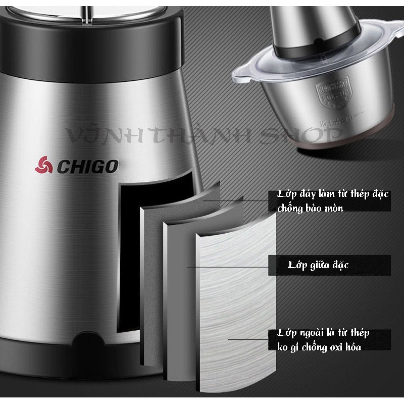 Giới thiệu [Mã ELHA22 giảm 5% đơn 300K] Máy Xay Thịt, Tỏi, Ớt Đa Năng CHIGO 4 Lưỡi Inox 304 Dung Tích 2 Lít Bảo Hành 1 Đổi 1