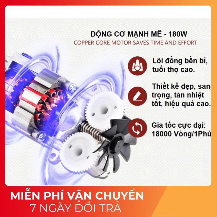 - Máy có công suất cực mạnh 180W, Trên máy có 07 tốc độ đánh khác nhau, giúp bạn dễ dàng điều chỉnh mức độ đánh thích hợp trong quá trình sử dụng. Trong đó chức năng gia tốc nhanh và an toàn cho phép tốc độ tăng tối đa tùy ý.