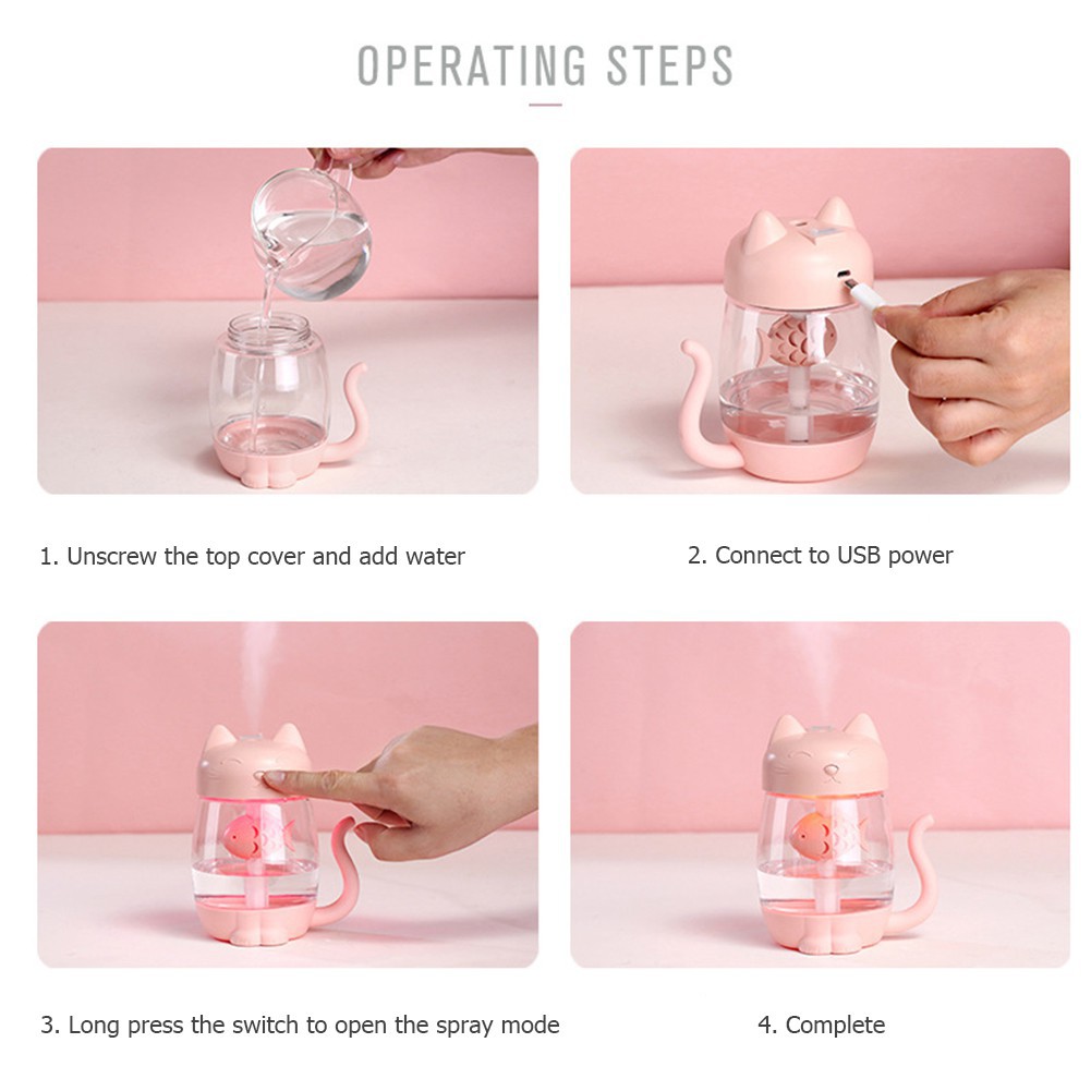 Thiết Bị Điện Gia Dụng > Thiết bị điện gia dụng nhỏ > Thiết bị xử lí không khí > Máy lọc không khí || [Mã ELHA22 giảm 5% đơn 300K] Máy phun sương đa năng hình mèo kèm quạt + đèn USBCòn hàng