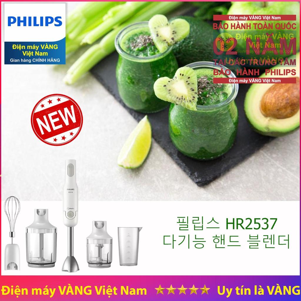 Thiết Bị Điện Gia Dụng > Đồ gia dụng nhà bếp > Máy ép, Xay sinh tố & Máy làm sữa đậu nành || [Mã ELHA22 giảm 5% đơn 300K] Máy xay cầm tay đa năng thế hệ mới Philips HR2537 model thay thế cho HR1607 HR1608 HR1604Còn hàng