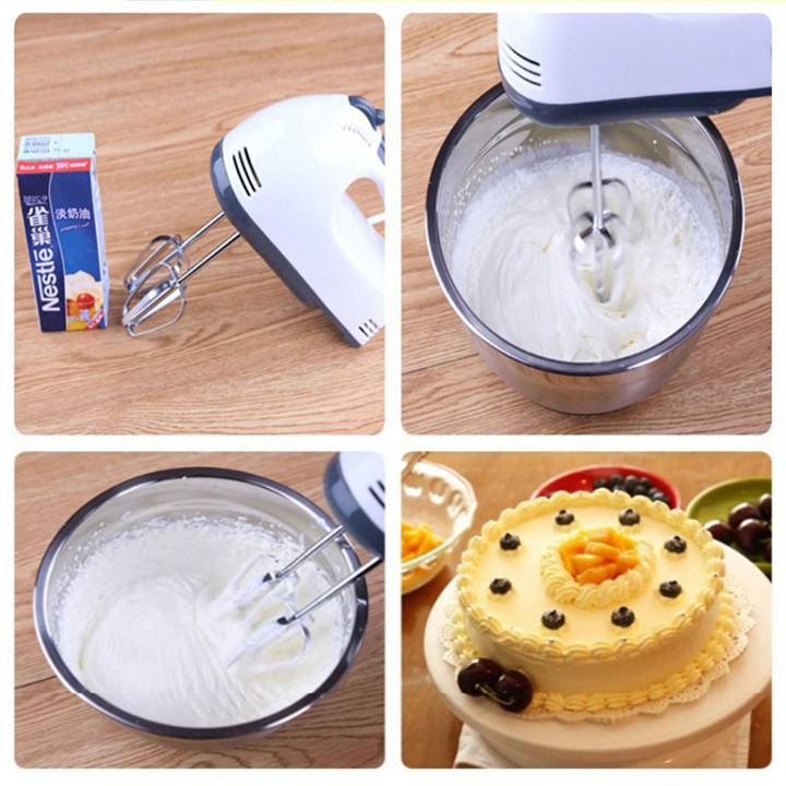 Máy được trang bị 2 que đánh kem và 2 que trộn bột, vừa có thể trộn các thực phẩm khô vừa nhào được các loại bột lỏng. Các que trộn làm từ inox không gỉ, có độ bền cao, đảm bảo chất lượng trong suốt thời gian sử dụng.