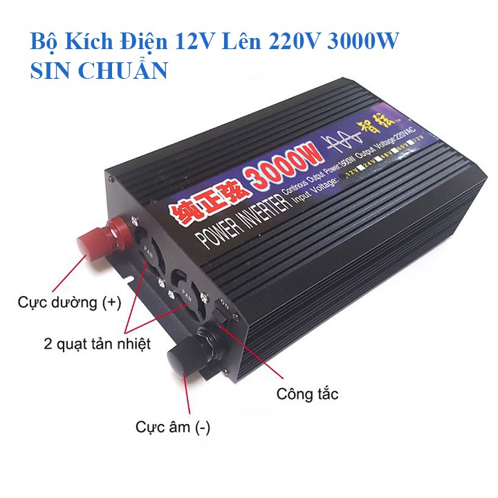 BỘ KÍCH ĐIỆN INVERTER 12V - 220V - 3000W SIN CHUẨN