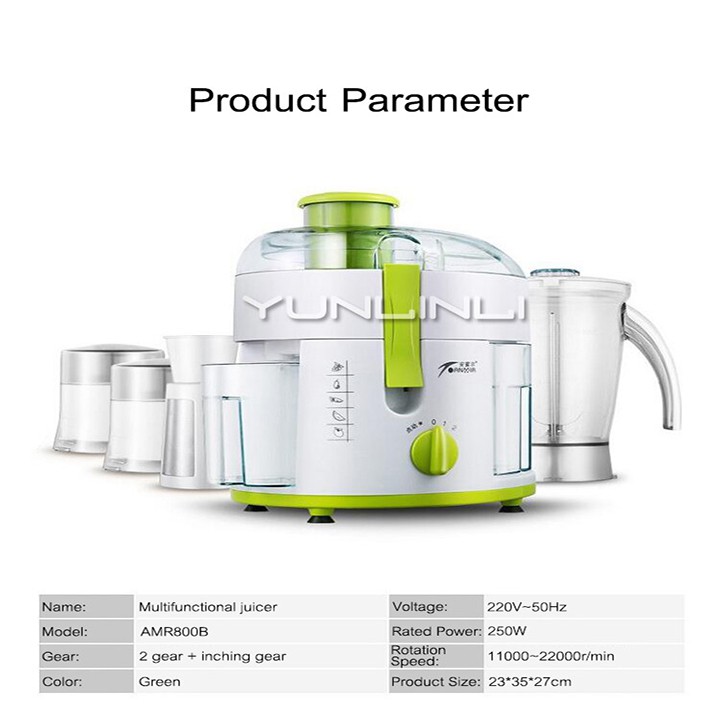 - Anmir 800B là chiếc máy ép trái cây đa năng, bạn chỉ cần mua một sản phẩm là có thể sử dụng được 3 tính năng: ép trái cây, xay sinh tố và cắt thực phẩm.