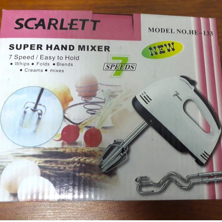 Thiết Bị Điện Gia Dụng > Đồ gia dụng nhà bếp > Máy trộn thực phẩm || [Mã ELHA22 giảm 5% đơn 300K] Máy đánh trứng, trộng bột Scarlett 7 tốc độ cầm tay công suất 180WCòn hàng