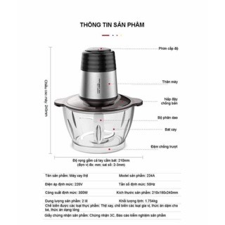 - Chất liệu: Thố thủy tinh borosilicate dày 6cm, dung tích 2L, lưỡi dao inox không gỉ,thân bọc inox
