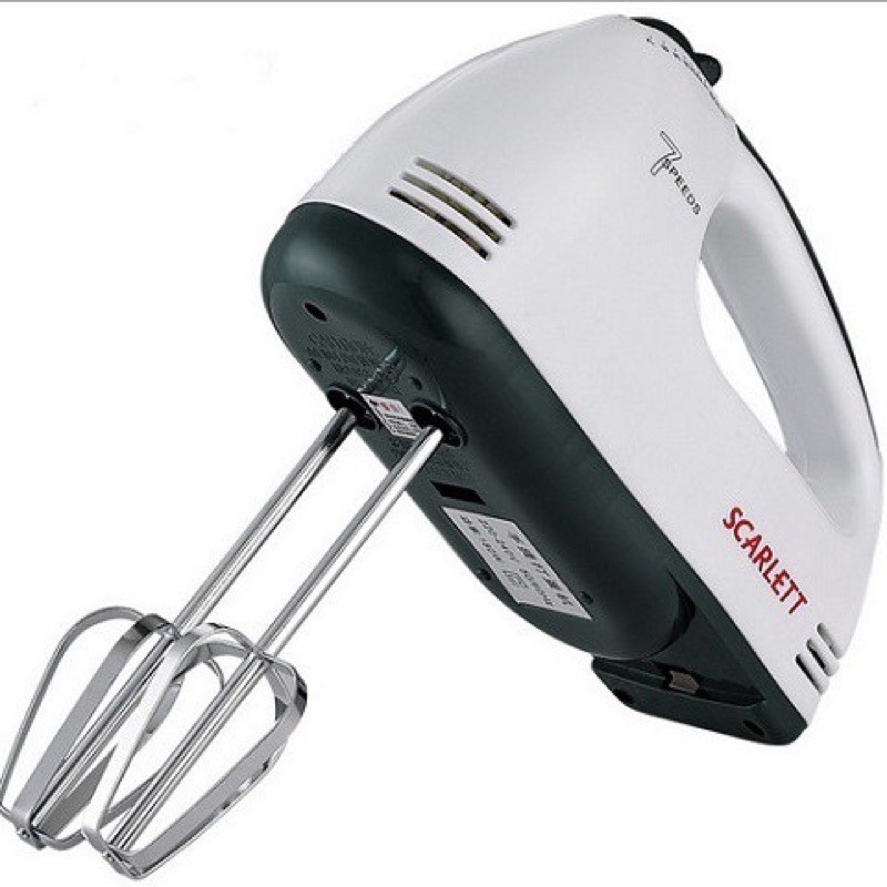 Máy đánh trứng, đánh kem bơ cầm tay, máy làm bánh 7 tốc độ công suất 180w tặng kèm 4 que làm bánh, đánh trứng chính hãng Scarlett có 7 mức tốc độ khác nhau