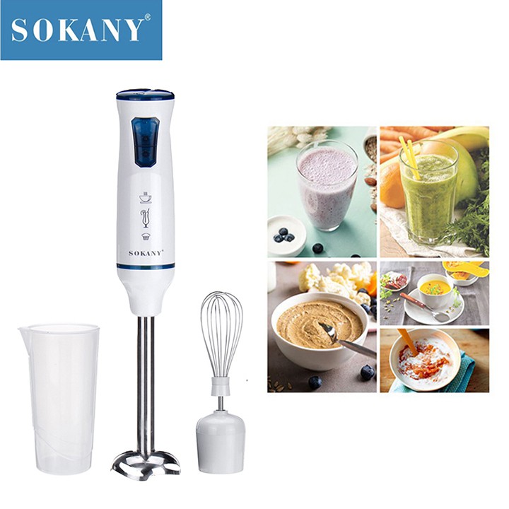 + Máy xay cầm tay Sokany – có rất nhiều chức năng như xay các loại hạt ngũ cốc, đánh trứng, xay sinh tố…