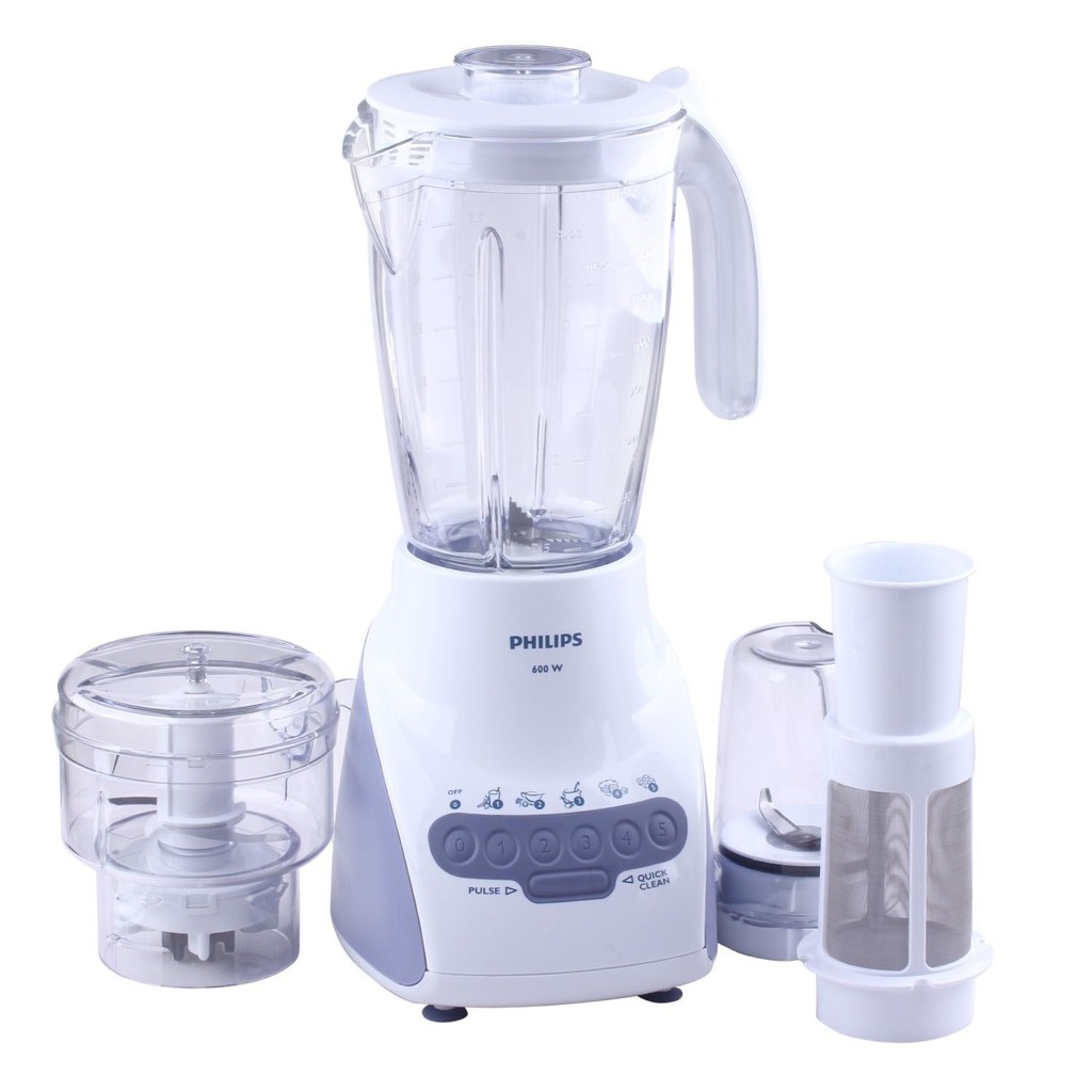 Máy xay sinh tố Philips HR2223/00 3 cối có thiết kế màu trắng nhẹ nhàng, phù hợp với nhiều không gian bếp