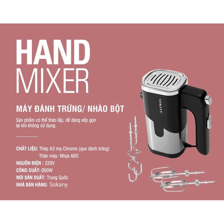 Máy đánh trứng, máy đánh trứng cầm tay SOKANY 800W[ LÔI 1 ĐỔI 1 TẠI NHÀ TRONG 7 NGÀY KHÔNG MẤT PHÍ & BẢO HÀNH 1 NĂM ]