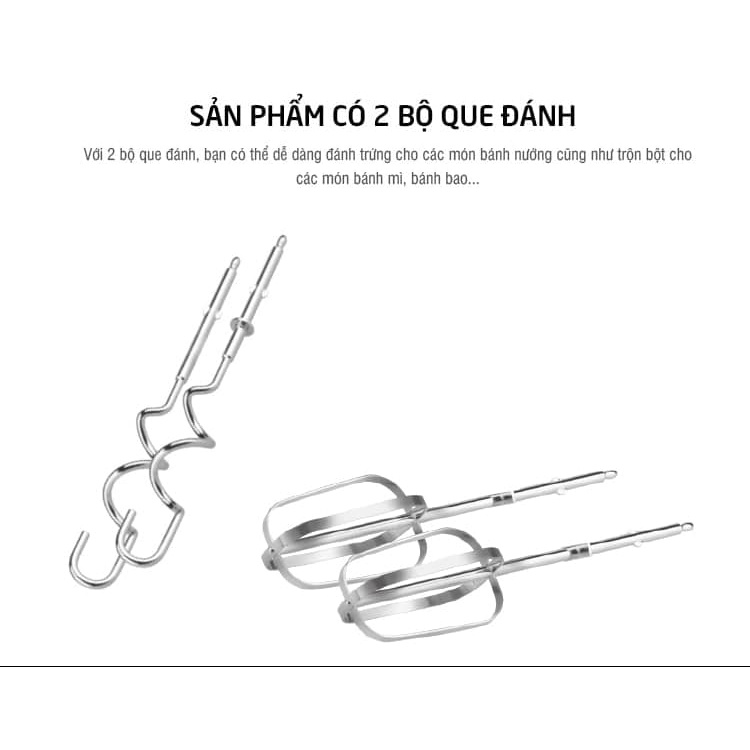 - Máy đánh trứng công suất cực lớn 800W giúp những người đam mê làm bánh,làm kem,món trứng,có thể đánh kem, khuấy bột làm bánh,đánh trứng... nhanh chóng mềm,mịn thì đây là sự lựa chọn hoàn hảo.