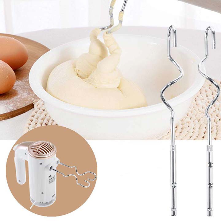 - Que đánh trứng được thiết kế dạng lồng giúp đánh trứng, kem, bơ mềm... hiệu quả hơn. Que có thiết kế dạng xoắn dùng để trộn, nhào bột. Que trộn bột, đánh trứng làm bằng thép không gỉ an toàn cho sức khỏe, có thể tháo lắp dễ dàng.
