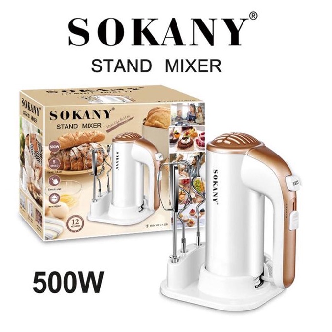 - Bộ sản phẩm gồm: 1 Thân máy, 1 chân đế, 2 que nhào, 2 que phới lồng.