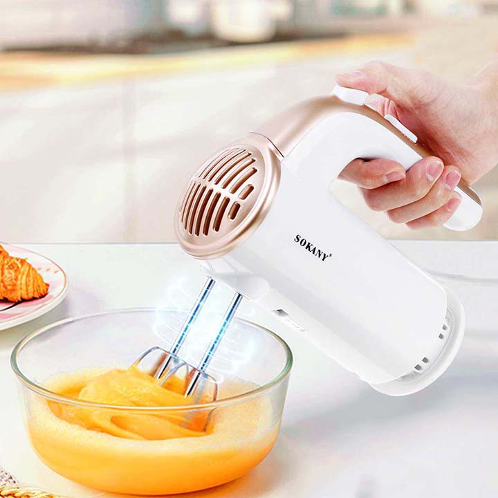 - Máy đánh trứng với 5 tốc độ quay và nút tăng cường giúp đánh trứng và trộn bột nhanh hơn