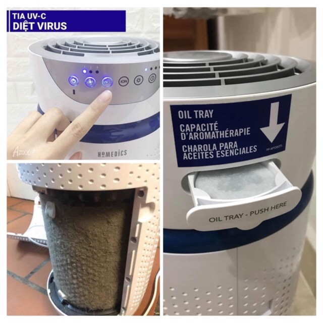 Thiết Bị Điện Gia Dụng > Thiết bị điện gia dụng nhỏ > Thiết bị xử lí không khí > Máy lọc không khí || [Mã ELHA22 giảm 5% đơn 300K] Máy lọc không khí ion có đèn UV lọc bụi mịn, tạo ẩm HoMedics AP-AT20 5in1 [Mua 1 Tăng 1 ]Còn hàng