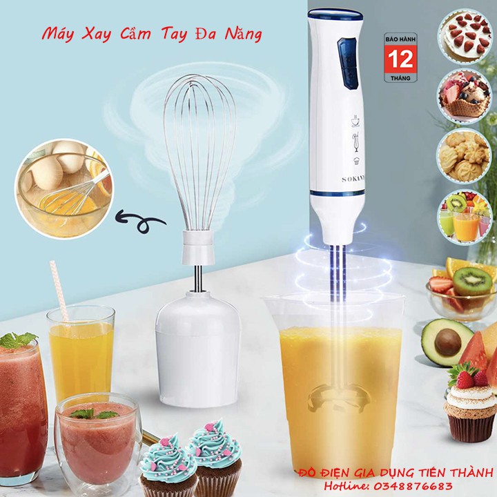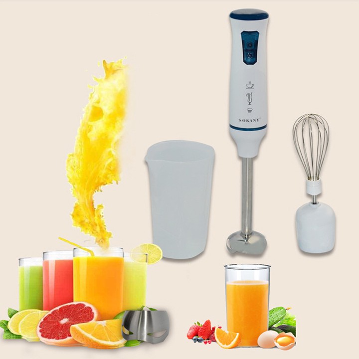 + Máy xay cầm tay Sokany – có rất nhiều chức năng như xay các loại hạt ngũ cốc, đánh trứng, xay sinh tố…
