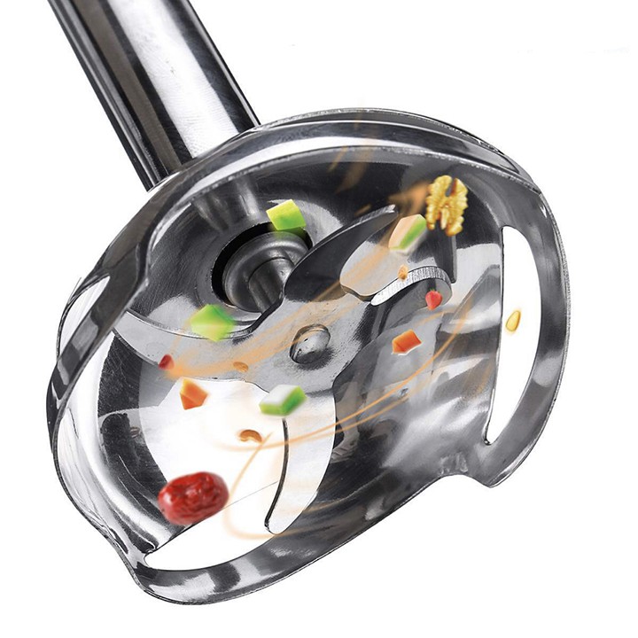 + Máy Xay Sinh Tố Cầm Tay có đầu dao bằng inox rất bền có thể xay các loại thực phẩm: Thịt, cua, cá, rau quả, làm nước sốt…khi đã nấu chín.