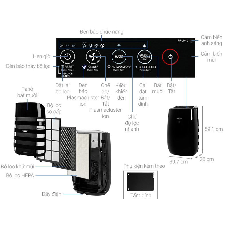 Thiết Bị Điện Gia Dụng > Thiết bị điện gia dụng nhỏ > Thiết bị xử lí không khí > Máy lọc không khí || [Mã ELHA22 giảm 5% đơn 300K] Máy Lọc Không Khí Và Bắt Muỗi Sharp FP-JM40V-B - Diện tích 30m² – Hàng Chính HãngCòn hàng