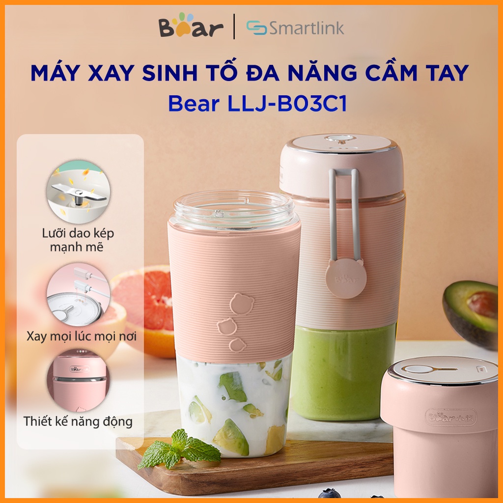Giới thiệu [Mã ELHA22 giảm 6% đơn 300K] Máy Xay SInh Tố Cầm Tay Mini Bear LLJ-B03C1- Bảo hành 18 Tháng