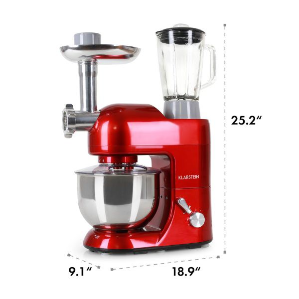 - Máy làm bếp đa năng Klarstein Lucia Morena 1200w, 5 lít thoải mái đánh trứng, trộn bột làm bánh, xay thịt nhanh chóng tối đa đến 2kg bột, thịt.