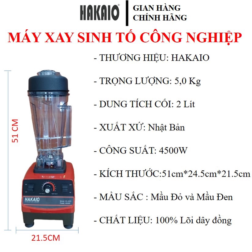 [Mã ELMALL10 giảm 10% đơn 500K] Máy Xay Công Nghiệp -4500W [BH-24 THÁNG] HAKAIO Xay Đá, Sinh Tố, Đồ Khô Cứng..