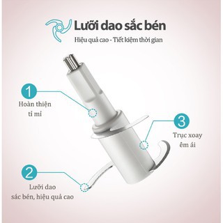 - Công suất của máy lên tới 220W, các lưỡi dao làm từ thép không gỉ siêu bén giúp cắt/xay thực phẩm một cách dễ dàng và hiệu quả. Việc chế biến thức ăn trở nên nhanh gọn, tiết kiệm thời gian.