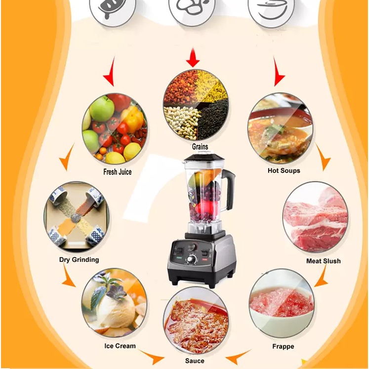 - Công suất làm việc cùng động cơ 2200W đáp ứng mọi yêu cầu của các chủ cửa hàng kinh doanh đồ uống với nhu cầu xay liên tục.