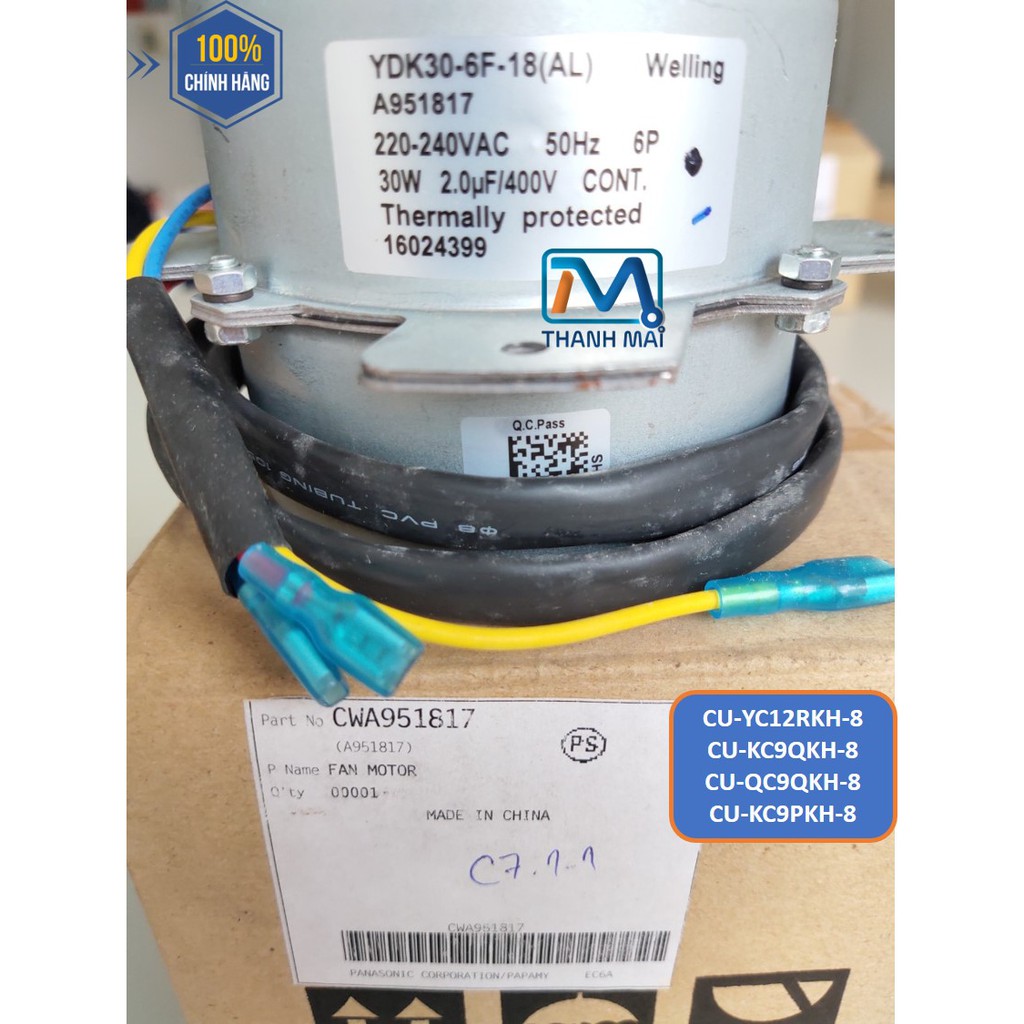 Thiết Bị Điện Gia Dụng > Thiết bị điện gia dụng lớn > Thiết bị làm mát > Điều hòa || [Mã ELHA22 giảm 5% đơn 300K] Motor quạt dàn ngoài máy lạnh Panasonic CU-YC12RKH-8 // KC9QKH-8 // QC9QKH-8 // KC9PKH-8Còn hàng