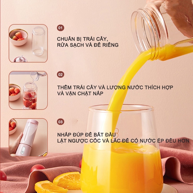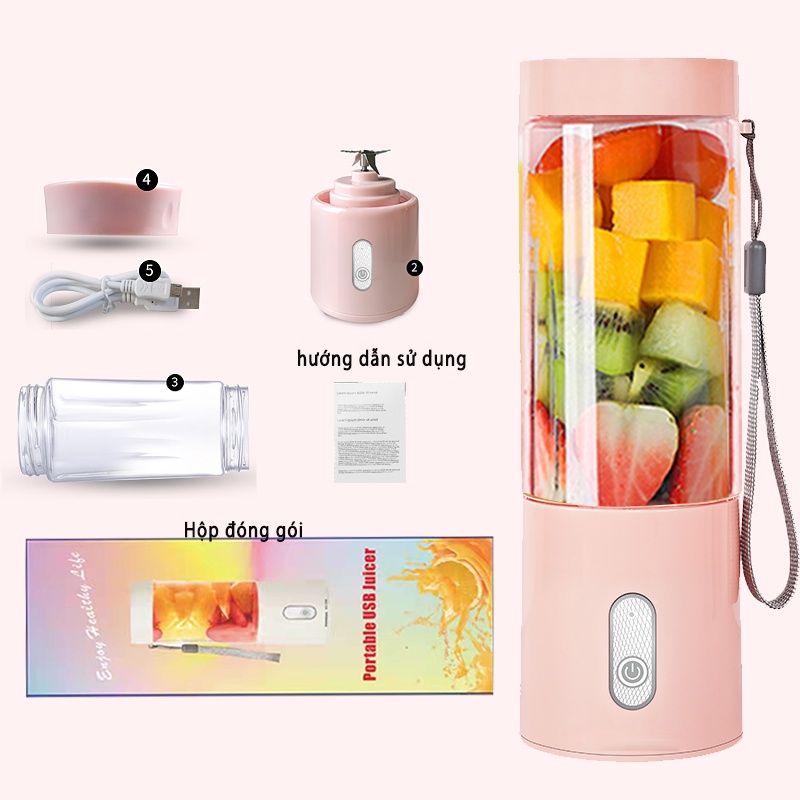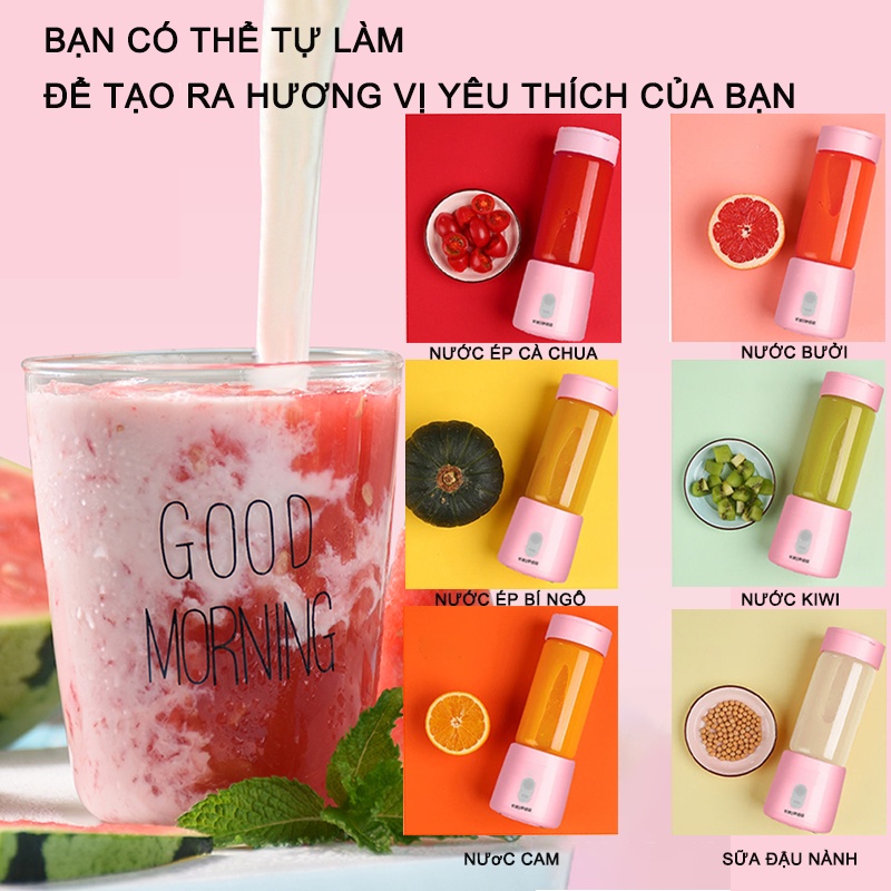 • Máy cực nhỏ gọn, dung tích 400ml, bạn có thể mang đi bất cứ đâu mà bạn muốn như đi làm, đi du lịch, tập thể thao...