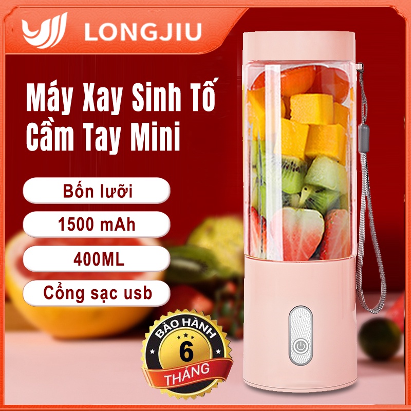 LONGJIU✔Máy Xay Sinh Tố Cầm Tay Mini 400ML - Bảo hành 6 tháng-Máy Ép Trái Cây Mini 4 Lưỡi