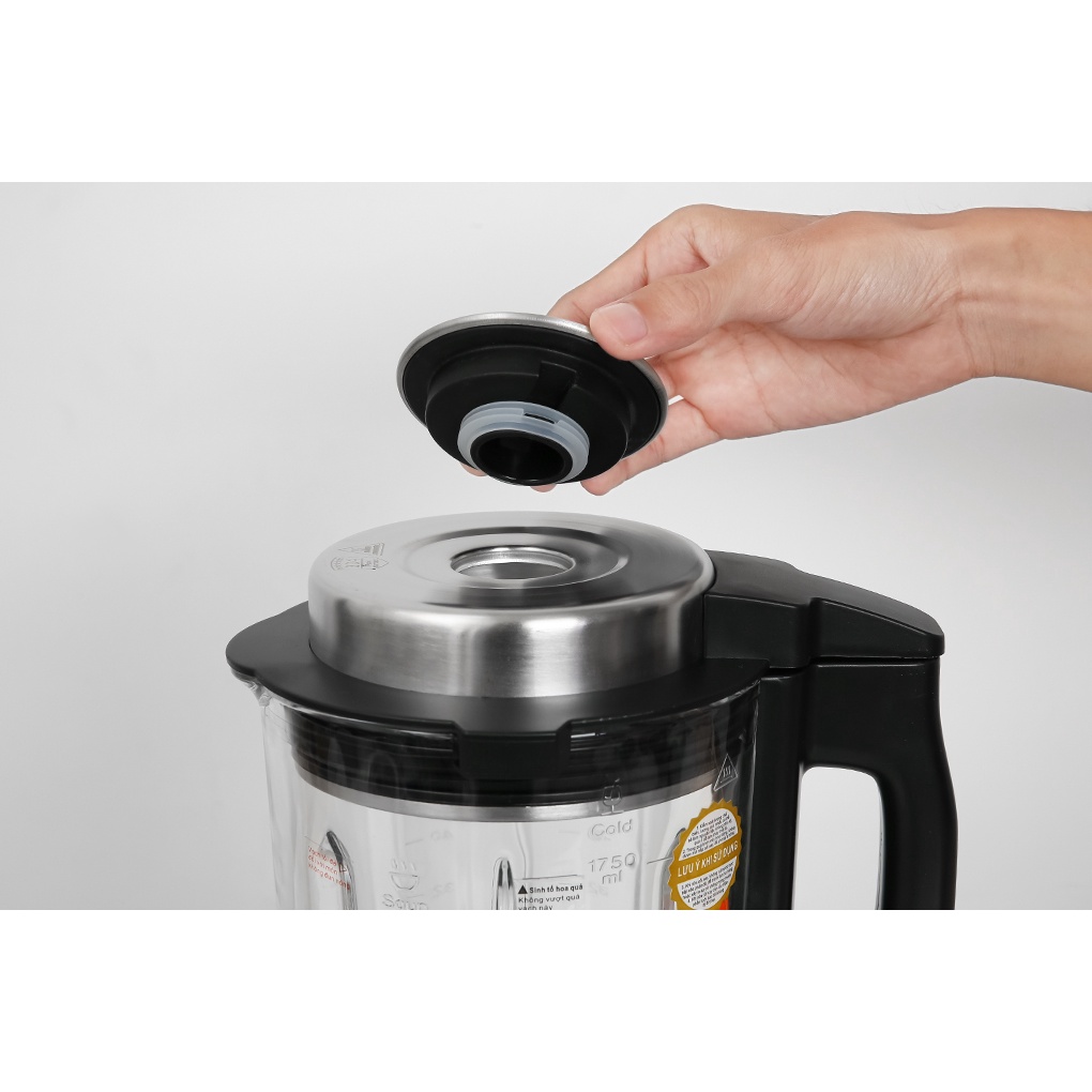 Máy làm sữa hạt có cối xay dung tích 1.75 lít chất liệu thủy tinh sang trọng, bền bỉ nhờ cấu tạo 5 lớp chịu nhiệt và chịu lực, an toàn sức khỏe caoTất cả các bộ phận gồm lưỡi dao, vỉ hấp, phần lót bên trong nắp cối đều được chế tác từ inox 304 - loại inox bảo đảm an toàn, thường được ứng dụng trong y tế.