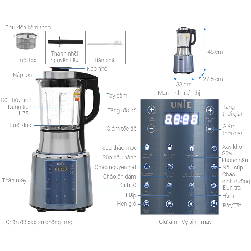 Thương hiệu: UNIE | Xem thêm các sản phẩm Máy xay sinh tố của UNIEMô tả ngắn