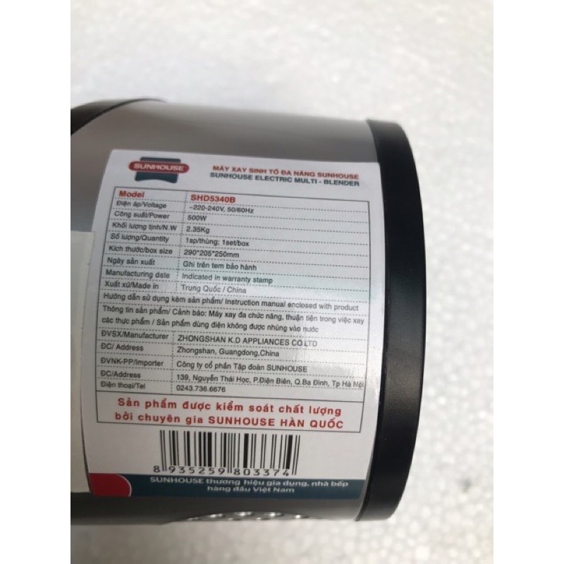 Thiết Bị Điện Gia Dụng > Đồ gia dụng nhà bếp > Máy ép, Xay sinh tố & Máy làm sữa đậu nành || [Mã ELHA22 giảm 5% đơn 300K] [FREESHIP 99K]_Máy xay sinh tố đa năng SUNHOUSE SHD5340B hang trưng bày mới 98%Còn hàng
