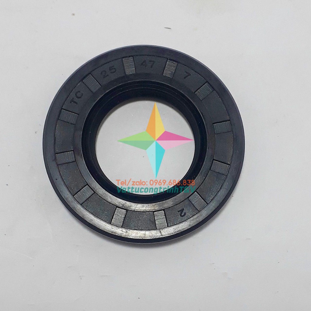Phớt bảo vệ vòng bi máy giặt TC 25 x 47 x 7Thông số: Đường kính ngoài: 47mm x Đường kính trong: 25mm x Độ dày:7mm.
